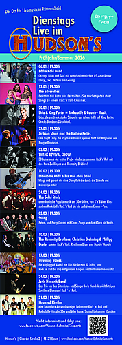 Das Frühjahrs-Programm der Dienstags(Hannes)-Konzerte im Hudsons 2026