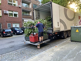 Zwar etwas später als sonst, aber dafür ausgewachsener wurden am 3.6. unsere Blumensäulen geliefert.