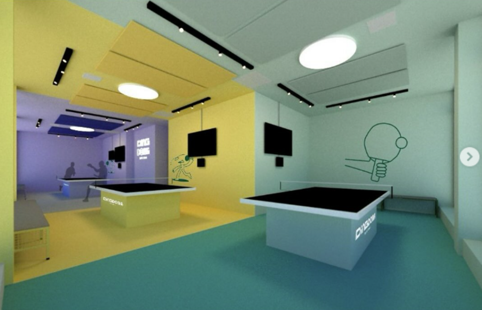 Die Tische sind vollständig digitalisiert, mit automatischem Punktezählen, Instant Replays etc.. Schläger, Bälle und professionelles Equipment sind selbstverständlich inklusive. An jeden der drei Tische passen maximal sechs Spielerinnen und Spieler. Jeder Tisch hat ein iPad, es gibt einen Monitor und einen Knopf, mit dem man den Spielstand zählen kann.