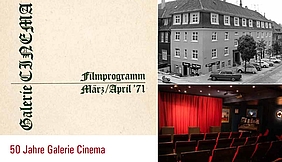 Die fast von Beginn an regelmäßig ihre Jahresfilmprogramme ausgezeichnete Galerie Cinema eröffnete am 19. März 1971 mit dem Film „Easy Rider“ von Dennis Hopper. Ziel der Galerie Cinema war immer, ausgesuchte Filme zu zeigen, Filme die jenseits des Mainstreams entdeckt werden wollen, Filme die unterhalten, aber auch Denkanstöße bieten. Vor allem in den 1970er Jahren, in den Zeiten des gesellschaftspolitischen Um- und Aufbruchs, mit Erstarken des „Neuen Deutschen Films“ zeigte die Galerie Cinema provokative, innovative, verstörende, hinterfragende Filme. Das hat sich bis heute nicht geändert, damals wurden sie allerdings wesentlich leidenschaftlicher diskutiert – oft bis spät in die Nacht.