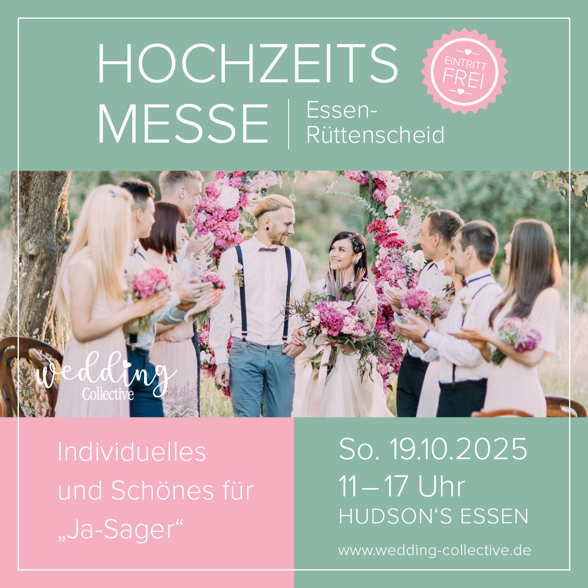 „Lokal. Liebevoll und Live.“ So präsentiert sich das „Wedding Collective“ bereits zum 9. Mal in Essen-Rüttenscheid und schafft eine individuelle Hochzeitsmesse zum Anfassen und Erleben.