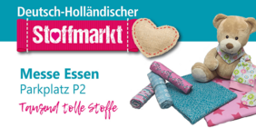Am Samstag, den 19. Juni 2021 von 8-17 Uhr, findet der beliebte Deutsch-Holländische Stoffmarkt wieder in Essen statt. Wegen der Corona-Auflagen diesmal nicht in Werden, sondern auf dem Messeparkplatz P2 am Girardethaus, denn hier kann man mehr Abstand halten. Hier bieten sich auch großzügigen Parkmöglichkeiten und eine gute Anbindung an die Rü.