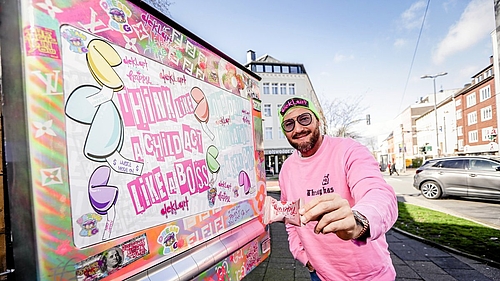 „Mein Ziel war es, etwas Positives in die Stadt zu bringen und damit Gutes zu tun”, sagt Klapschus, der sein Atelier deklart in der Emmastraße 1 hat, in der Bildzeitung.