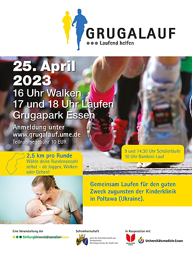 Alle Teilnehmenden sind eingeladen, sich vorab Sponsoren für die gelaufenen Runden zu suchen. Der Erlös der Veranstaltung kommt kranken Kindern in der Kinderklinik Poltawa (Ukraine) zugute. Der Veranstalter, die Stiftung Universitätsmedizin Essen, sowie das Klinikum sind von Anfang an sehr aktiv engagiert vor allem medizinische Hilfe für die Ukraine zu leisten.