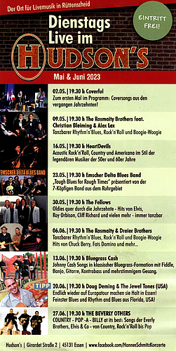 Das Programm des Hannes-Konzerte, jeden Dienstag im Hudson's bis zur Sommerpause.