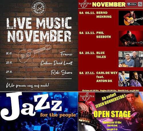 Auch im „SAILOR's PUB“ gibt es wieder samstags regelmäßig Livemusik und donnerstags die SESSION - Die offene Bühne steht jedem offen! Programm...