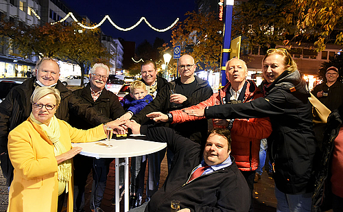 Die IGR hat am 27.10.21 die Rüttenscheider Winterbeleuchtung eingeschaltet und mit einem kleinen Umtrunk gefeiert. Neu ist die Beleuchtung der Rüttenscheider Brücke.