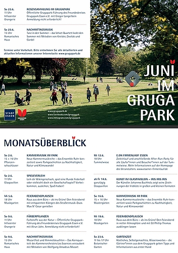 Alle Veranstaltungen können auf dem nebenstehenden Flyer eingesehen werden, weitere Informationen rund um das Grugapark-Veranstaltungsprogramm sind unter www.grugapark.de zu finden.