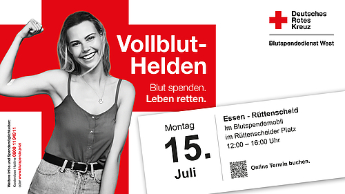 Am Montag, der 15. Juli von 12-16 Uhr findet die nächste Blutspendeaktion auf dem Rüttenscheider Markt (Rüttenscheider Platz) statt.