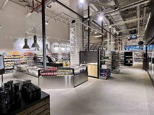 Wie bereits angekündigt, hat der pro bio.MARKT im Hof D des Girardethauses eröffnet. Auf 460m² bietet er ein Vollsortiment und legt bei täglicher Belieferung großen Wert auf Frische.