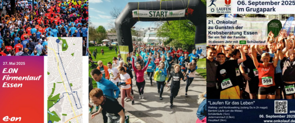Die Laufveranstaltungen E.ON Firmenlauf Essen, 21. Onkolauf und Grugalauf in der Gruga fanden auch wieder statt und sprechen ein breites Spektrum an Hobbysportlern aller Altersklassen an.