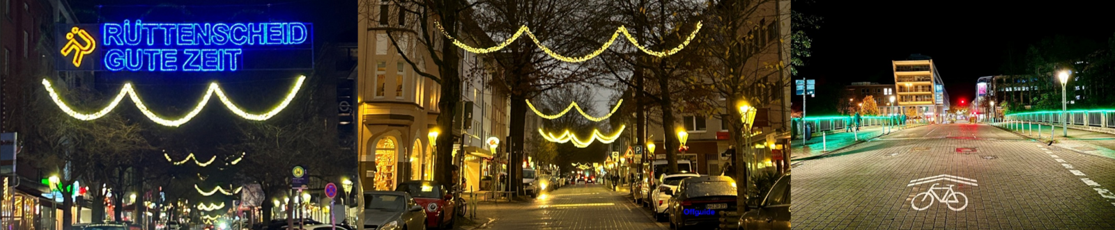 Ab Ende Oktober wurde wieder die Winterbeleuchtung einschließlich der Beleuchtung der Rüttenscheid Brücke umgesetzt. Von Oktober bis Anfang Februar erhellt sie die Rü in der dunklen Jahreszeit. Das Begrüßungsschild Rüttenscheid Gute Zeit ist eine ständige Installation der IGR.